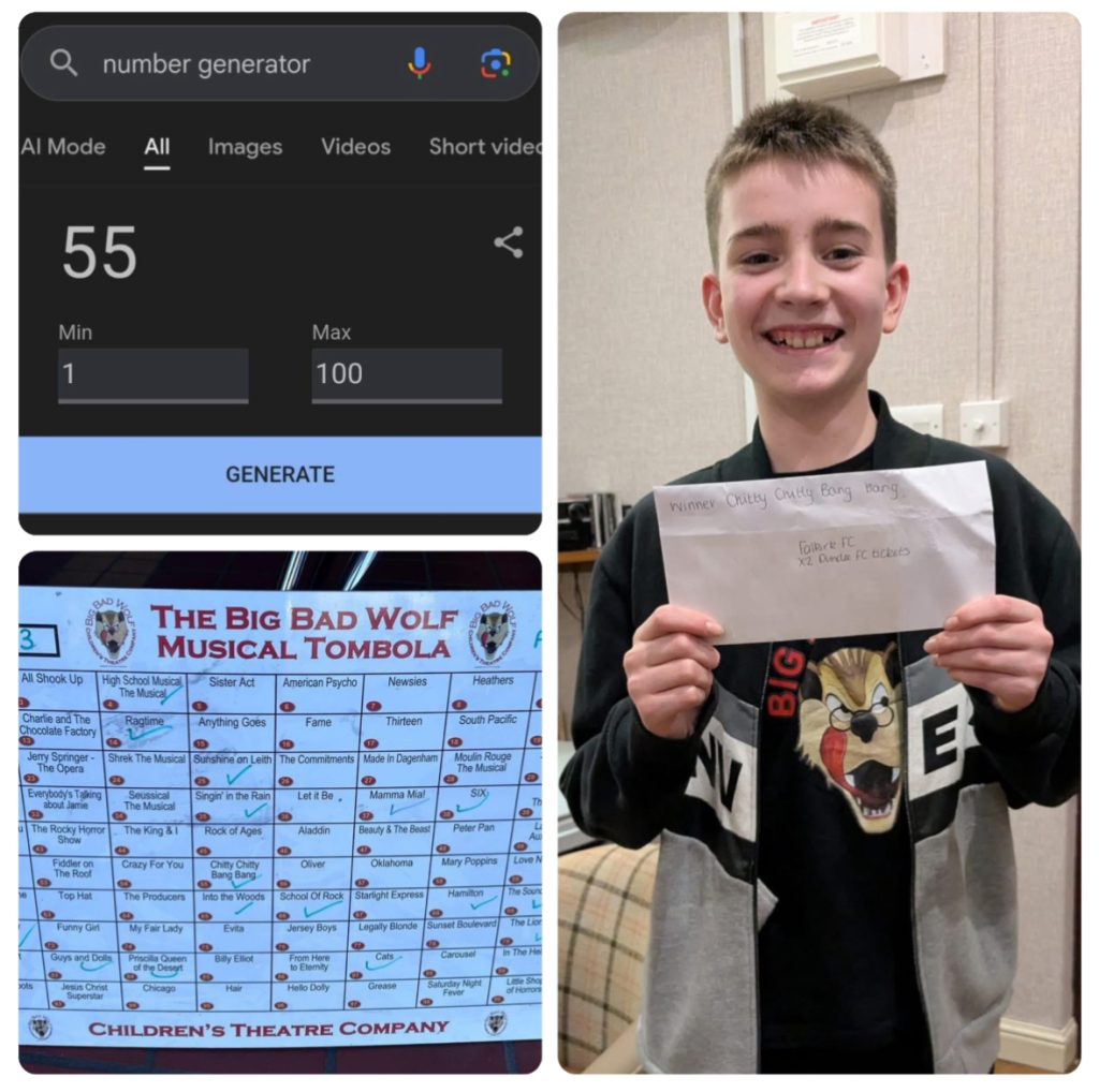 Congratulations to Siobhan Daly for choosing No. 55 – Chitty Chitty Bang Bang (Would you believe it!) on our Musicals Prize Board and winning the two tickets to the Falkirk v Dundee FC match. Enjoy!